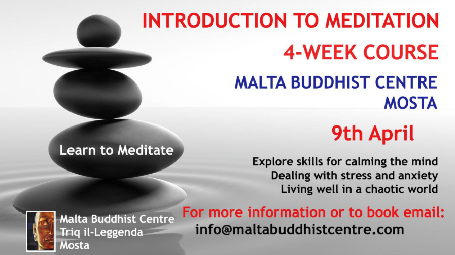 To book your place on an event or course please fill out the form on the landing page. Alternatively, email info@maltabuddhistcentre.com